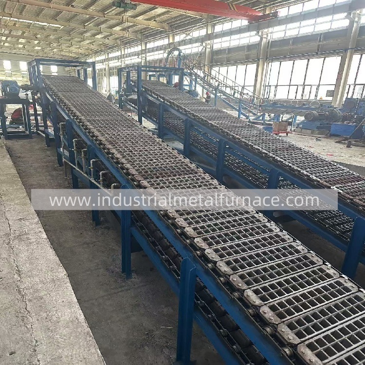 Corpo della macchina di colata di lingotti: Include il telaio, la trasmissione, lo smodellamento meccanico e i sistemi di raffreddamento. Assicura un movimento regolare della catena con stabilità e integrità strutturale durante la colata.